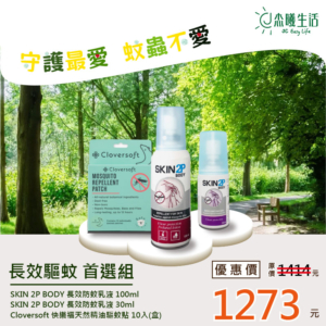 Skin 2P Body & Cloversoft 快樂福 長效驅蚊 首選組 (派卡瑞丁防蚊液+天然精油驅蚊貼)