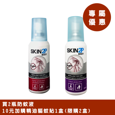 Skin 2P Body & Cloversoft 快樂福 長效驅蚊 首選組 (派卡瑞丁防蚊液+天然精油驅蚊貼)